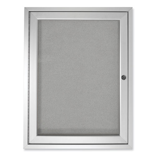 Ghent's Enclosed Vinyl Bulletin Board is the perfect way to display messages, pictures, and important information securely. The message center is made with a vinyl tack surface that hides pin holes and holds up under repeated tacking, providing years of reliable service. When used outside, this vinyl board will not break down or mold, unlike cork enclosed boards. You do not have to worry about damage from weather or humidity as long as you hang the board under an awning or overhang. This 1-door enclosed bulletin board is protected using shatter-proof acrylic panels, full-length door hinges, and locks that are flush with the frame. You can install the board in high-traffic, public areas without worrying about damage or tampering. Hidden corner brackets allow the message center to sit flush against the wall without any visible hardware which adds protection from vandalism. The colored vinyl surface is paired with a satin aluminum frame and includes two keys. Perfect for indoor and outdoor use.