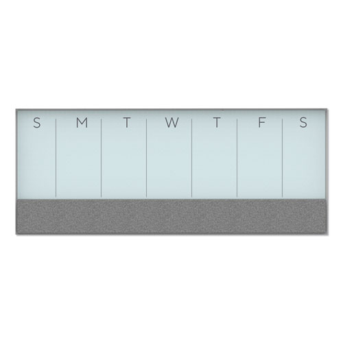 3N1 Magnetic Glass Dry Erase Combo Board, Weekly Calendar, 36 x 15.25, Gray/White Surface, White Aluminum Frame