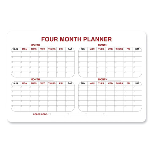Ghent's economy whiteboard planner is a great way to effectively keep track of your valuable time. Planner is a roomy 2' x 3' size with four month format. The durable non-magnetic surface is dry erasable and features silk-screened graphics applied in two colors for greater visibility. The board has rounded corners. It comes complete with a black marker and eraser.
