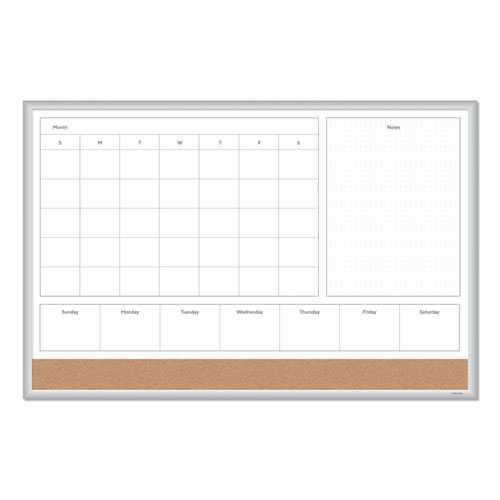 4N1 Magnetic Dry Erase Combo Board, 35 x 23, Tan/White Surface, Silver Aluminum Frame