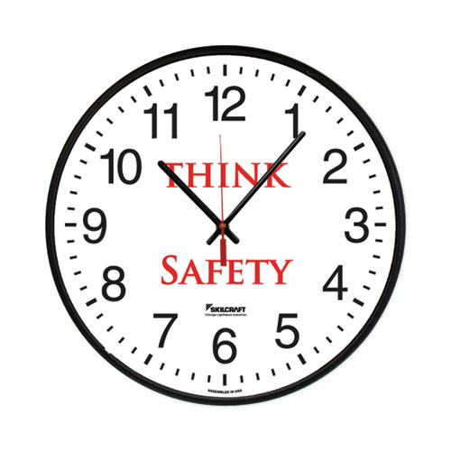 6645016986558 SKILCRAFT Safety Message Quartz Wall Clock, Think Safety, 12.75" Overall Diameter, 1 AA (sold separately)