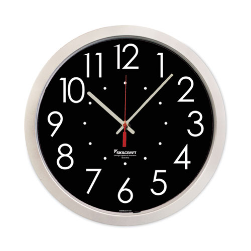 6645016986560 SKILCRAFT High Contrast Quartz Wall Clock, 14.5" Overall Diameter, White Case, 1 AA (sold separately)