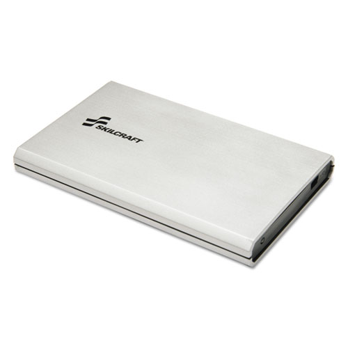 Portable hard drive is fully USB powered—no external power supply required. It features a unique industrial design with brushed silver casing. A status indicator light lets you know the drive is working.