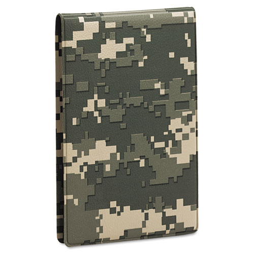 Convenient pocket designed top-opening pad folio protects all your important memos. Constructed of leather grain embossed vinyl in digitized camouflage pattern. Memo book is included.