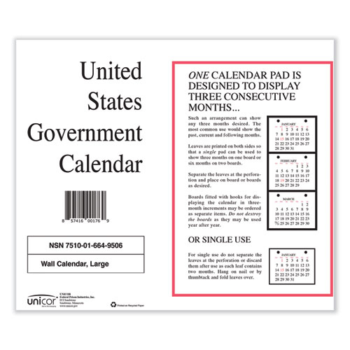 7510016649509, Perforated Monthly Wall Calendar, 11 x 8.5, White Sheets, 12-Month (Jan to Dec): 2026, 10/Pack