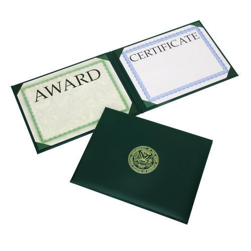 7510017146628, SKILCRAFT Awards Certificate Padded Cover Binder, Army Seal, 11.62 x 9.12, Green/Gold
