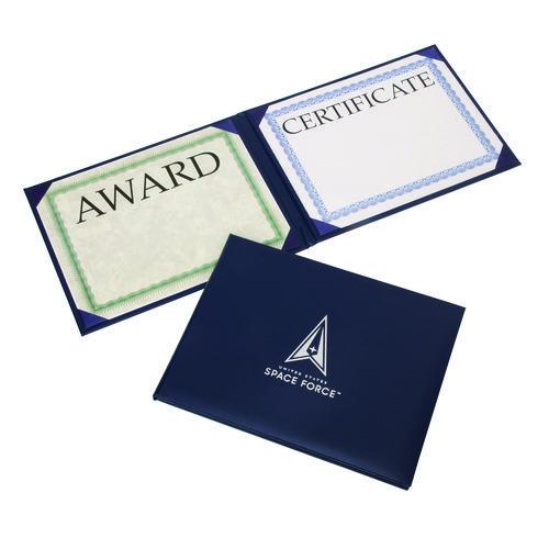 7510017148886, SKILCRAFT Awards Certificate Padded Cover Binder, USSF Seal, 11.62 x 9.12, Blue/Silver