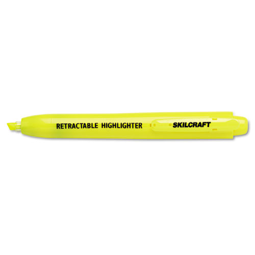 7520015548210 Skilcraft Retractable Highlighter, Yellow Ink, Chisel Tip, Yellow Barrel, Dozen