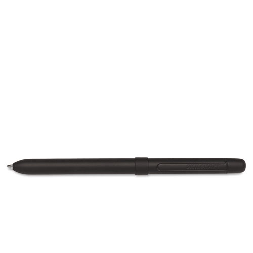 Special slim design fits flight suit and military uniform pockets, this medium-point 3-in-1 twist pen comes with two different colored ink, and a 0.5 mm pencil with eraser. Featuring non-reflective flat finish on a metal barrel, this pen is FOD compliant for cockpit and ramp safety.
