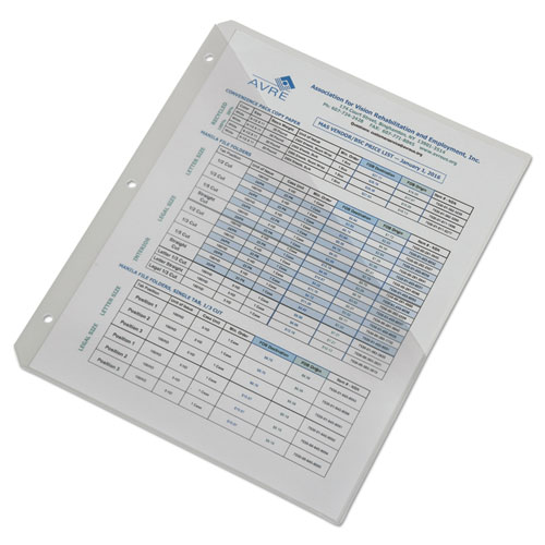 Organize papers in three-ring binders without hole punching, using these Three-Ring Slash-style File Jackets that are made of durable, water- and tear-resistant polypropylene. Diagonal slash pockets on each side keep documents safe yet provide easy access when needed.