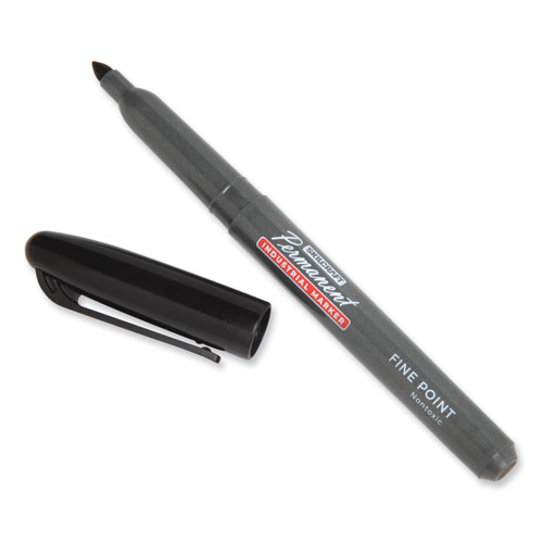 Tackle heavy-duty marking tasks with this SKILCRAFT® Industrial Grade Permanent Marker. This fine-point black permanent marker features a durable, fine-point tip for writing with crisp, clear lines, while the ink withstands temperatures up to 500°F, making it ideal for laboratory work. Marker writes on glass, film, plastic, wood, and stone, and it has resilient, quick-drying ink that resists both water and fading.