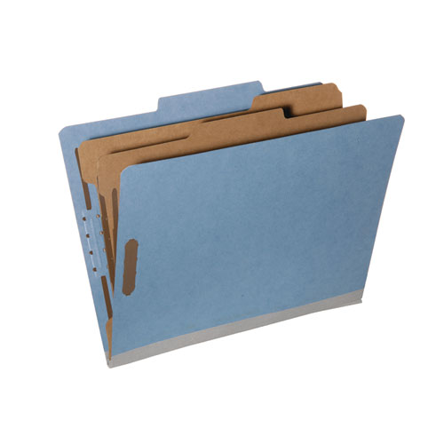 7530014181314, SKILCRAFT Classification Folder, 2 Dividers, 6 Fasteners, Letter Size, Blue Exterior, 10/Box
