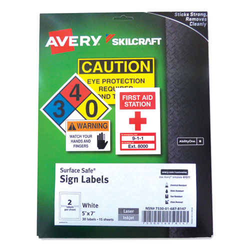 7530016878147 Skilcraft/avery Surface Safe Sign Labels, 5 X 7, White, 2/sheet, 15 Sheets/box, 12 Boxes/box