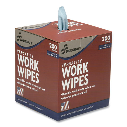 7920016849744, SKILCRAFT Industrial Work Wipes, 1-Ply, 12 x 10, Blue, 200 Sheets/Box, 8 Boxes/Carton