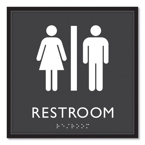 ADA Sign, Unisex Restroom, Plastic, 8 x 8, Clear/White