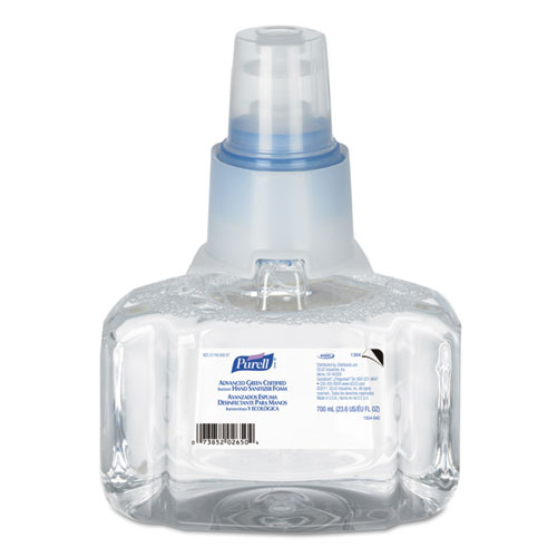 advanced hand sanitizer green certified foam refill, for ltx-7 dispensers, 700 ml, fragrance-free, 3/carton