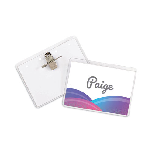 Name Badge Kits, Top Load, 3 1/2 X 2 1/4, Clear, Combo Clip/pin, 50/box