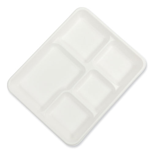 bagasse pfas-free food tray, 5-compartment, 8.26 x 10.23 x 0.94, white, bamboo/sugarcane, 500/carton