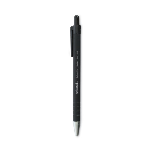 Universal™ Retractable Ballpoint Pen features a rubberized barrel with ringed, no-slip grip that’s easy to hold. The stable and rubberized barrel provides exceptional comfort and a secure grip for precision writing. The quick-drying, water-resistant ink won't smear or run, keeping your documents safe and legible. The retractable pen protects pockets and purses by keeping ink inside the pen when closed.