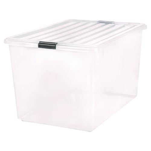 132 Qt. Latch Lid Storage Box, 20.9" x 28.8" x 17.8", Clear/Black