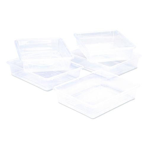 Storage Tray, Flat, 1.69 gal, 10.65" x 13.17" x 2.96", Translucent, 5/Pack