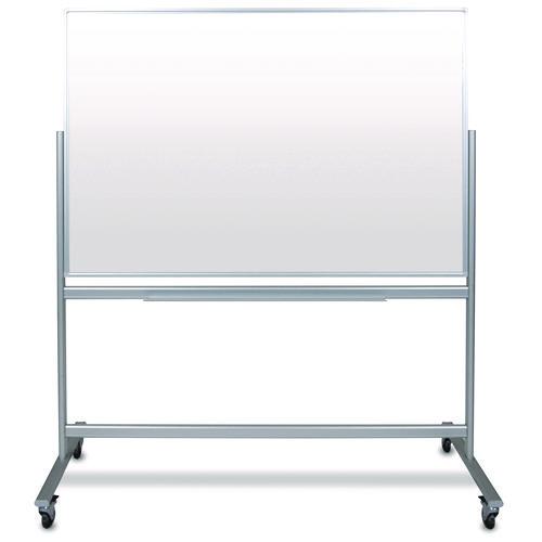 Mobile Magnetic Glass Dry Erase Board, 60" x 40", White Surface, Silver Aluminum Frame