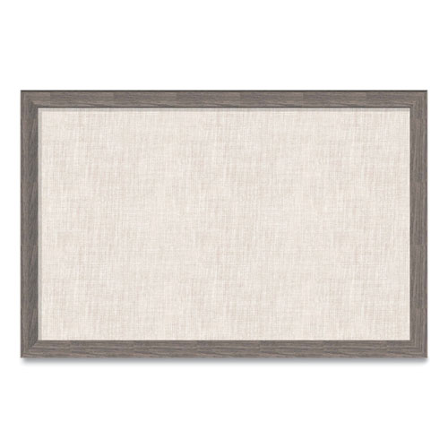 Linen Bulletin Board with Rustic Frame, 36" x 24" (Actual Size: 35" x 23"), Beige Surface, Brown Wood Frame