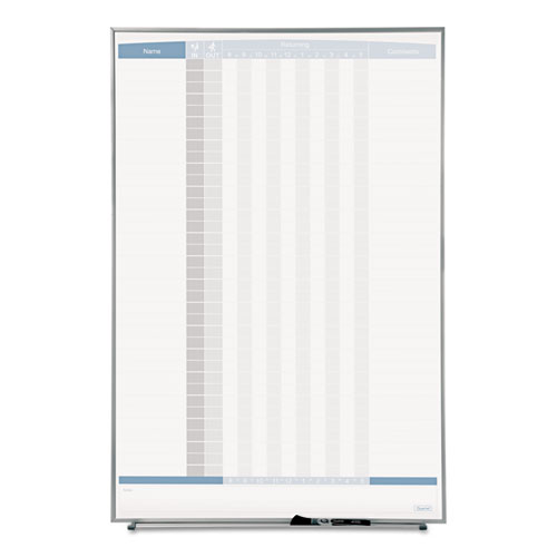 Matrix Employee In/Out Board, Vertical, 36-Person Tracking, 34" x 23", White Surface, Satin Aluminum Frame