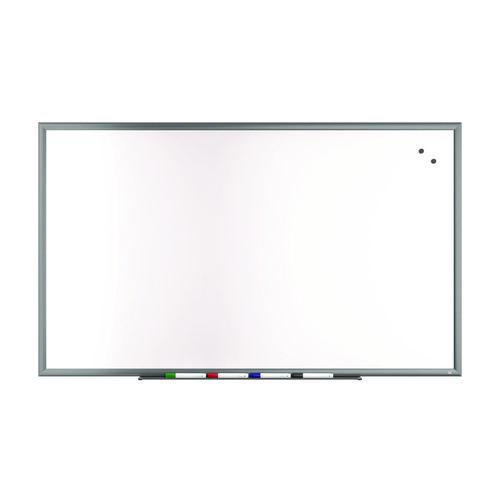 Magnetic Porcelain Dry Erase Board, 60" x 36", White Surface, Gray/Natural Aluminum Frame