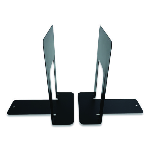 Steel Bookends, Contemporary Style, Nonskid Base, 6 x 8 x 9.25, Black, Pair