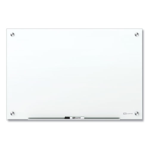 Writing stands out on our high-contrast, true white glass. Elevate your workspace with a frameless design and stunningly white surface that accents nearly any décor. Non-absorbent board is easy to erase and will not stain or ghost. Tempered glass resists scratches and dents. Included pass-through mounting hardware lets you easily install board. Comes with an accessory tray, two high-power glass board magnets, installation template and one Quartet dry-erase marker. For best results use Quartet Glass Board Accessories, sold separately.