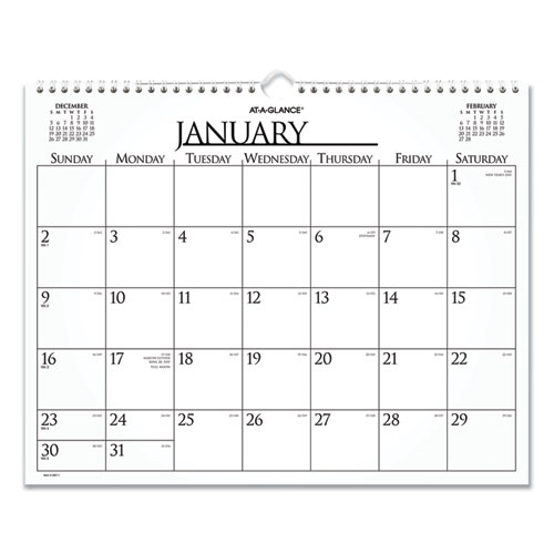 Use this planning calendar to keep track of your schedule. Perfect when you need to keep the work team or whole family on the same page. High-quality paper features superior ink bleed resistance. Covers 12 months from January to December with Julian dates. One month per page format with unruled daily blocks for plenty of open planning space. Past/future month calendar references are displayed for easy date tracking and future planning. Use alone or with any Day Runner wall planning board. Full chipboard backing creates a firm writing surface. Twin wire binding at the top has a built-in hanging loop for easy wall display.