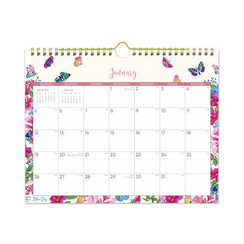 Fly By Monthly Wall Calendar, Butterflies Artwork, 11" x 8.75", Cream/Pink/Blue Sheets, 12-Month (Jan to Dec): 2026