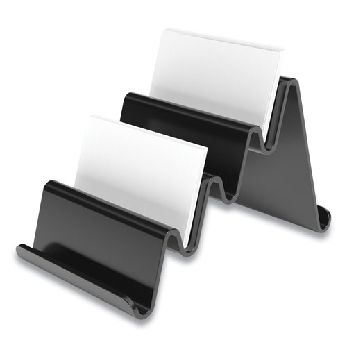 Four Compartment Business Card Holder, Holds 100 Cards, 3.9 X 6.3 X 4, Plastic, Black