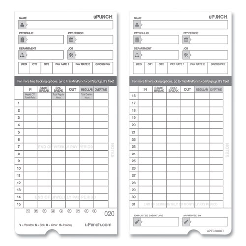 Time Clock Cards For Upunch Hn4000, Two Sides, 7.37 X 3.37, 50/pack
