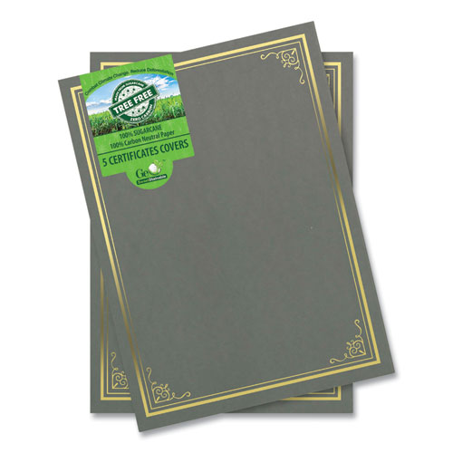 Certificate/Document Cover, 9.75" x 12.5", Gray With Gold Foil, 5/Pack