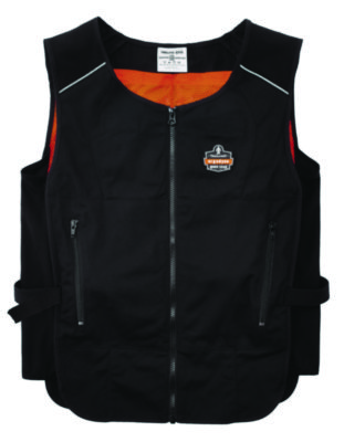 The lightweight cooling vest helps to keep workers cooler, safer and more productive. Its phase change cooling material maintains a 64°F/18°C temperature for up to two hours when activated. The vest's adjustable hook and loop closures around the waist provide a customized fit for different body types. The heavy-duty front zipper makes for easy on/off, while the two front zippered pockets can be used to store small accessories. Phase Change Cooling Packs not included. There are many ways to activate your cooling vest. Simply place the four removable packs in a cooler of ice water for five minutes; freezer for eight minutes; refrigerator for 12 minutes; or near an air conditioner for one hour. The cooling pack should be washed by hand with a mild detergent and warm water. Do not machine wash or machine dry. The fabric vest is machine washable with mild soap.