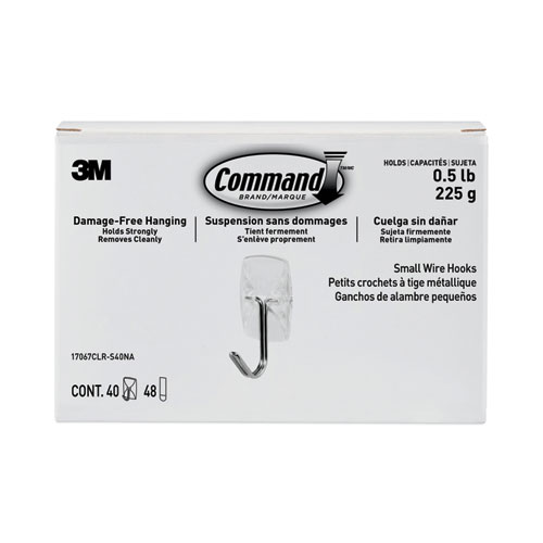 Clear Hooks and Strips, Small, Plastic/Metal, 0.5 lb Capacity, 40 Hooks and 48 Strips/Pack