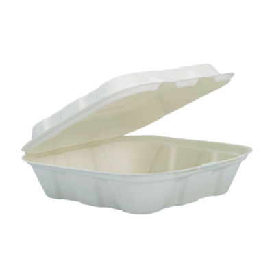 Compostable Fiber Hinged Trays, ProPlanet Seal, 8.03 x 8.38 x 1.93, Ivory, Molded Fiber, 200/Carton