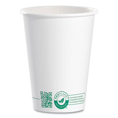Compostable Paper Hot Cups, ProPlanet Seal, 12 oz, White/Green, 50/Pack