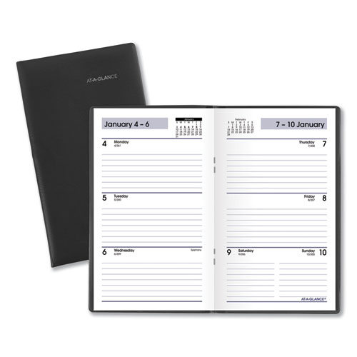 Soft vinyl cover and a compact design; plan your week your way with open scheduling. One week per two-page spread; ruled block-style for open scheduling; current and future months reference. High-quality paper with superior ink bleed resistance.