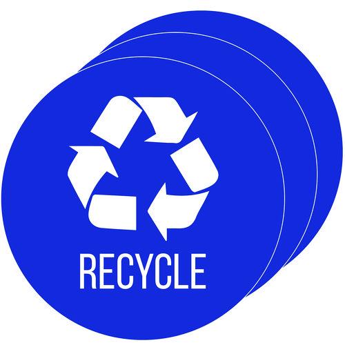 Vinyl Decals, Recycle, 4" Diameter, Blue/White, 3/Pack