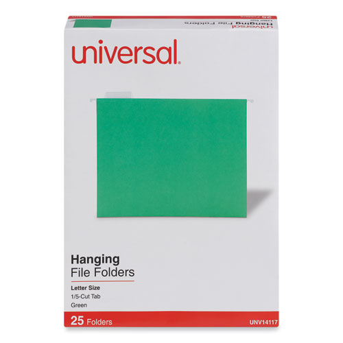Deluxe Bright Color Hanging File Folders, Letter Size, 1/5-Cut Tabs, Bright Green, 25/Box