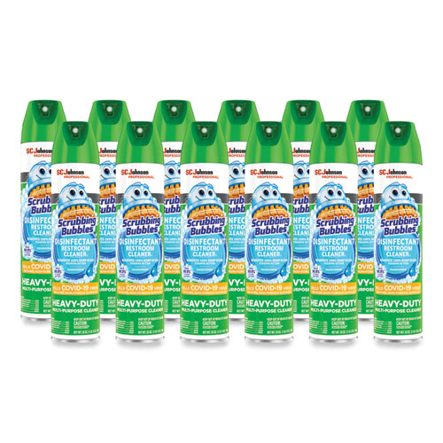 Scrubbing Bubbles Disinfectant Restroom Cleaner II kills 99.9% of viruses and bacteria such as Herpes Simplex Virus Type 1, Herpes Simplex Virus Type 2, Influenza A (H1N1) Virus, Respiratory Syncytial Virus, Rotavirus, SARS-CoV-2, Staphylococcus aureus (Staph), Salmonella enterica (Salmonella), Pseudomonas aeruginosa, Enterobacter aerogenes, Escherichia coli 0157:H7 (E. Coli), Listeria monocytogenes, Methicillin Resistant Staphylococcus aureus (MRSA) when used according to disinfection directions on hard, non-porous surfaces. Fast-acting formula penetrates and lifts dirt to deliver a total clean in your restroom. Multi surface cleaner is a bathtub cleaner, shower cleaner and sink cleaner and can be used on chrome fixtures, fiberglass, glass, glazed ceramic tile, glazed porcelain, laminate, sealed granite, sealed quartz, stainless steel and vinyl. Makes cleaning soap scum and dirt easy, while leaving behind a brilliant shine. Not recommended for use on acrylic fixtures. Spot test all other hard, non-porous surfaces in an inconspicuous area. Use pesticides safely. Always read label and product information before use.