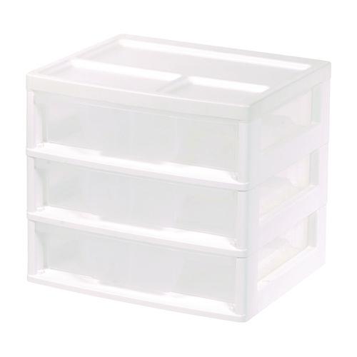 3-Drawer Desktop Storage, Plastic, 14.6 x 12.31 x 12.75, White/Clear