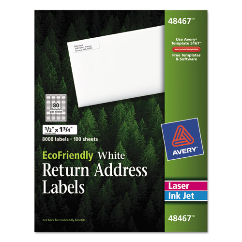 Ecofriendly Mailing Labels, Inkjet/laser Printers, 0.5 X 1.75, White, 80/sheet, 100 Sheets/pack