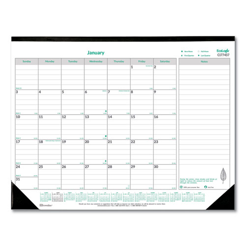 EcoLogix Monthly Desk Pad Calendar, 22 x 17, White/Green Sheets, Black Binding/Corners, 12-Month (Jan to Dec): 2024