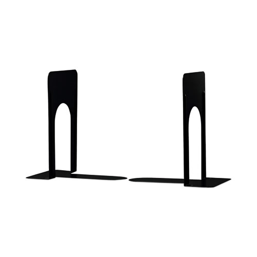 Reinforced, sturdy, metal bookends are designed to hold large and heavy books, files, and binders. The bookends help organize your workspace by removing clutter and keeping files in sight. The smooth edges with ribbing add stability and rigidity to hold almost anything upright. Two heavy gauge steel bookends with a hard enamel finish keep items in place and within reach.