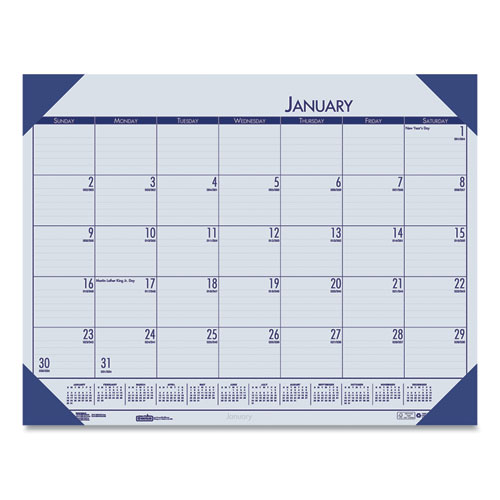 EcoTones Recycled Monthly Desk Pad Calendar, 18.5 x 13, Ocean Blue Sheets/Corners, Black Binding, 12-Month (Jan to Dec): 2024