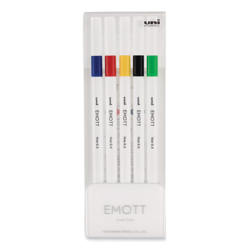 Emott Porous Point Pen, Stick, Fine 0.4 Mm, Assorted Ink Colors, White Barrel, 5/pack